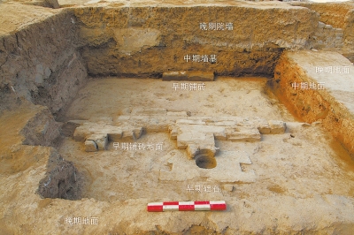 这是河南洛阳汉魏洛阳城太极殿遗址中,太极东堂北侧的早期遗迹。始建于曹魏时期的汉魏洛阳城太极殿,是中国历史上第一座“建中立极”的宫城正殿。太极殿由中间的主殿和两侧略小的太极东堂、太极西堂组成。三殿外围辅以回廊、院墙、宫门等附属建筑,从而构成规划有序的太极殿宫殿建筑群,是汉魏洛阳城乃至中国古代建筑体量最大的建筑群之一。