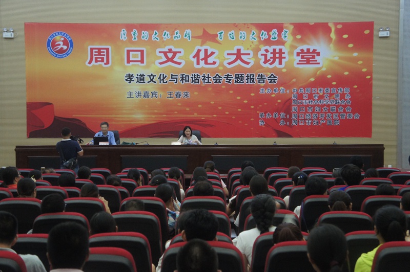 为了弘扬“忠孝仁义”中华传统美德,由周口市委宣传部、市文明办、市社科联、市妇联主办,由周口经济开发区管委会承办的“周口文化大讲堂-‘孝道文化与和谐社会’”专题讲座于7月26日下午在发区综合楼二楼东会议室举行。本期大讲堂由河南省洛阳监狱警官、“中华十大慈孝人物”王春来同志主讲。周口经济开发区管委会机关、市妇产医院工作人员与热心听众400余人一起聆听了讲座。