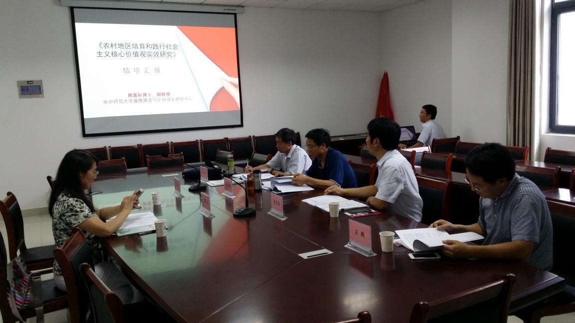 会上,来自华中师范大学马克思主义学院的龙静云教授、熊富标副教授就《农村地区培育和践行社会主义核心价值观实效研究》课题初步成果进行展示汇报。课题从影响农村地区培育和践行社会主义核心价值观的要素、评价体系以及南阳现状、对策等方面展开,选题切合当前发展现状,研究系统完备,理论性强。随后,来自市委宣传部、市社科联、市委党校的社科专家对课题成果分别提出几点建议,为课题进一步深入完善提供了较好的思路。