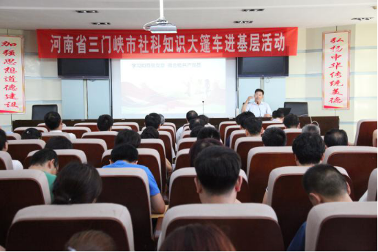 8月25日,“社科知识大篷车”在三门峡市环保局举办讲座《认真学习党章 自觉尊崇党章》。三门峡市委党校高天山教授担任主讲。