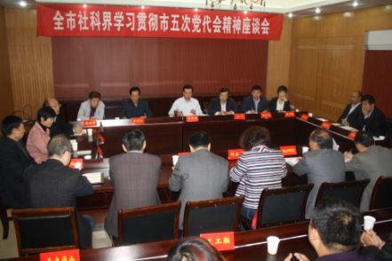 10月17日上午,商丘市社科联组织召开全市社科界学习贯彻市五次党代会精神座谈会。市直有关单位、市委党校、有关高校及有关学会的领导、专家等40多人参加会议。市委常委、宣传部部长王全周出席会议并讲话,市社科联主席陈剑江主持会议。