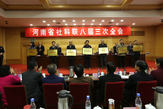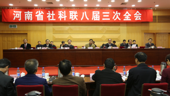 3月23日,省社科联八届三次全会在郑州召开。省委第四巡视组副组长韩豫宛,省委宣传部副部长李宏伟,省社科联主席李庚香、党组书记何白鸥、巡视员孟繁华,副主席王喜成、王朝纪,兼职副主席焦国栋、王永苏、喻新安、关爱和、王亚明、张宝峰,顾问王彦武,副巡视员张钢杰,省委宣传部理论处处长王承哲,省社科联秘书长关玉梅出席会议。省社科联八届委员会全体委员、重点联系单位分管科研工作的负责人、省直管县(市)党委宣传部分管理论工作的负责人共300余人参加会议。李庚香同志代表主席团作了工作报告,何白鸥同志主持会议。